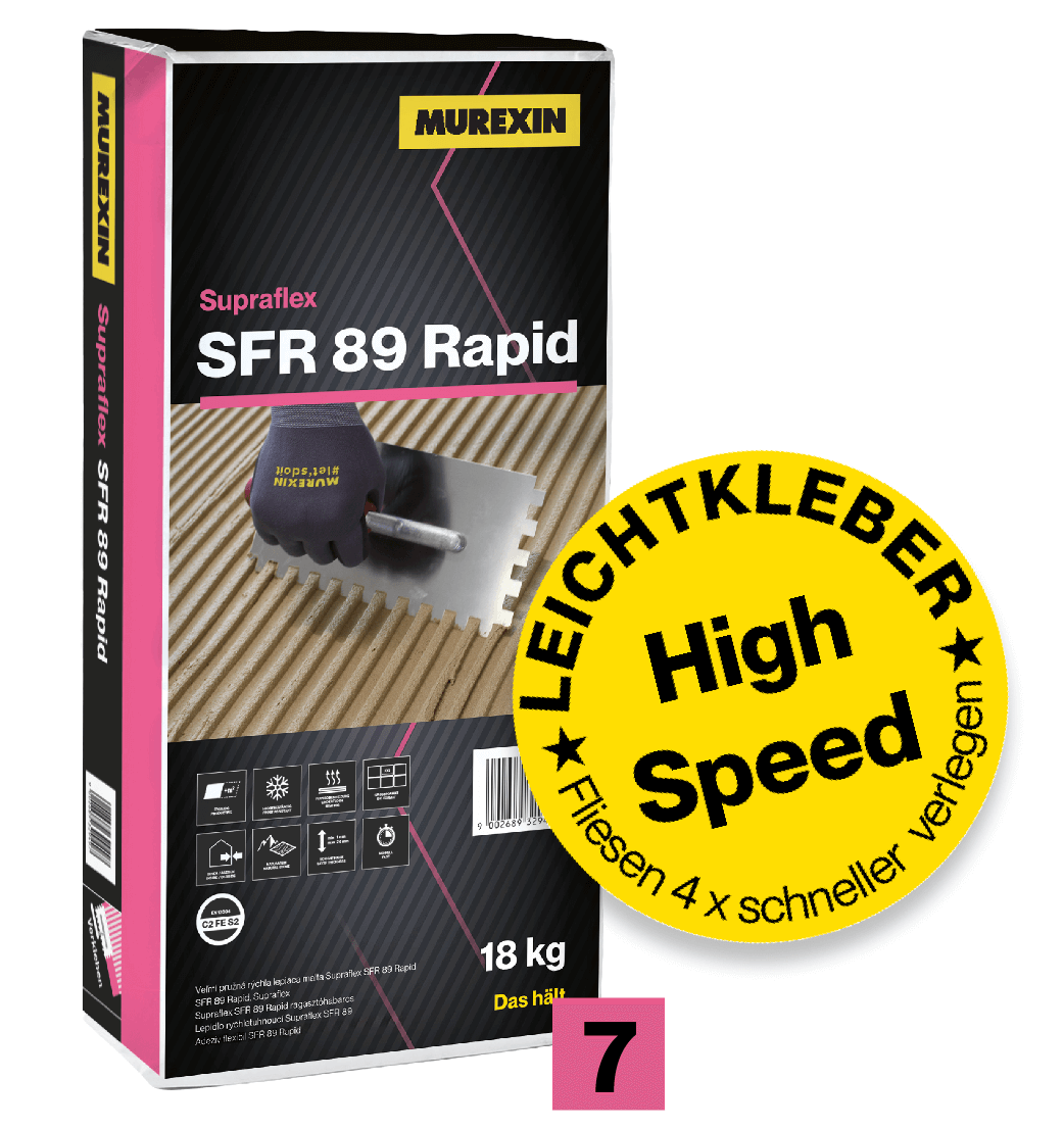Ob Küche, Bad oder Balkon – das Murexin Fliesensanierteam hat jetzt einen neuen Tempomacher am Start. Supraflex heißt der innovative Leichtkleber und definiert High Speed neu: superflexibel, supergeschmeidig, superschnell. Sein Beschleuniger? Ein spezieller Tonerdeschmelzzement. Und der Belag ist nach 2,5 Stunden begehbar.
