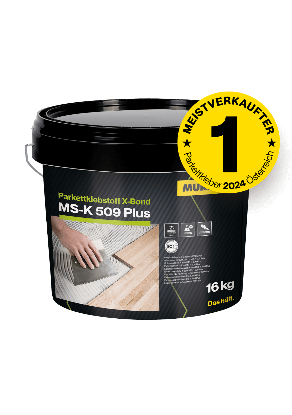 Ein sensationelles Preis-Leistungs-Verhältnis, bestens zu verarbeiten, keine Reklamationen und höchst wohngesund – der Parkettkleber X-Bond MS-K 509 Plus sorgt für Zufriedenheit bei allen Beteiligten. Betriebe, Verarbeiter und Kunden sind sich einig. Der meistverkaufte Parkettkleber Österreichs ist auch für sie die klare Nummer 1.